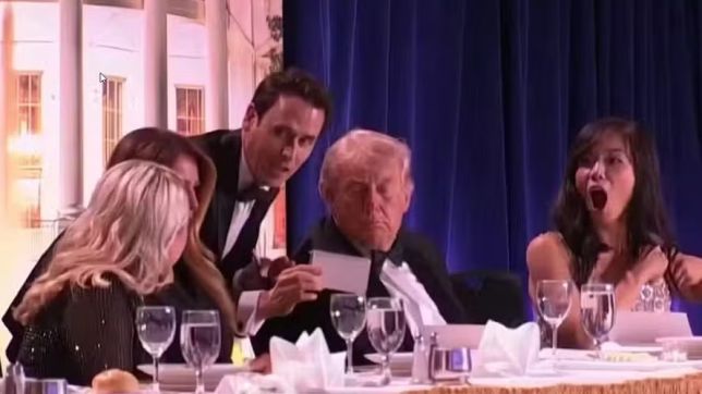 Imagens que circulam nas redes mostram convidados se protegendo sob mesas e sendo evacuados às pressas. Entre as autoridades presentes, o político Robert F. Kennedy Jr. também foi escoltado por agentes durante a confusão.