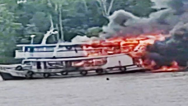 As embarcações navegavam lado a lado e o fogo atingiu as duas após a explosão em uma delas