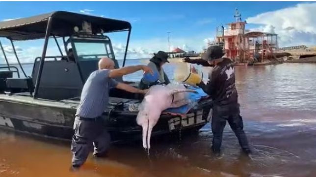 Boto-cor-de-rosa resgatado com ferimentos graves no Amazonas morre após atendimento veterinário