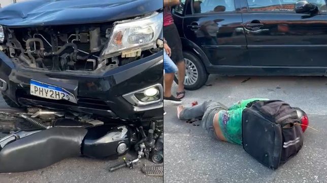 O motociclista foi arremessada há mais de três metros de distância e o condutor da picape, teve que manobrar rapidamente para desviar e não passar por cima do entregador de delivery, que recebeu socorro de alguns populares.