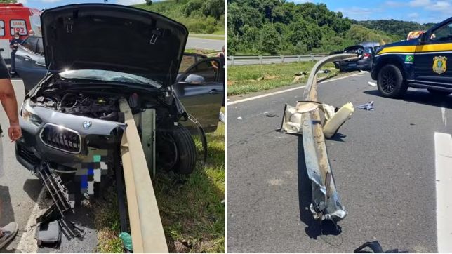 Criança morre após BMW ser atravessada por guard rail no PR; família estava voltando da praia