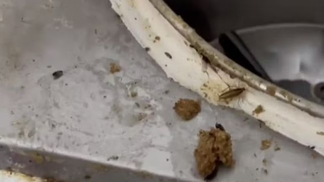 Restos de massa usados na preparação de alimentos foram encontrados espalhados em bancadas. Nos utensílios havia restos de insumos usados no preparo dos salgados. Parte dos produtos estava em caixas de isopor com marcas escurecidas e com partes se desmanchando.
