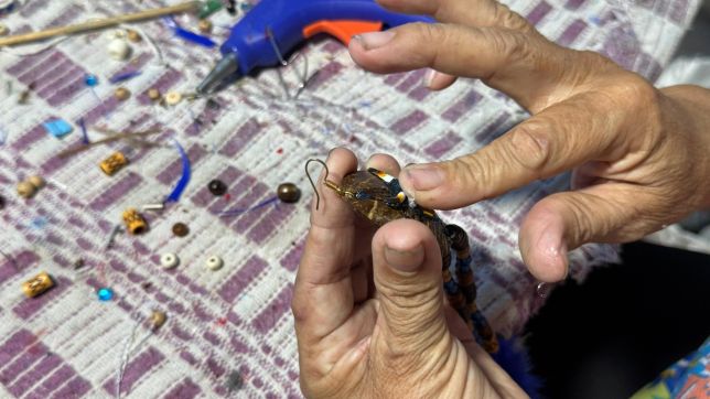 A festa dos bois Caprichoso e Garantido também é uma vitrine para o trabalho da artesã Maria Silvia Ribeiro, de 50 anos. Ela também foi contemplada pelo Crédito Rosa e foi com a ajuda do financiamento que conseguiu investir em matéria-prima para a confecção de acessórios para o festival.