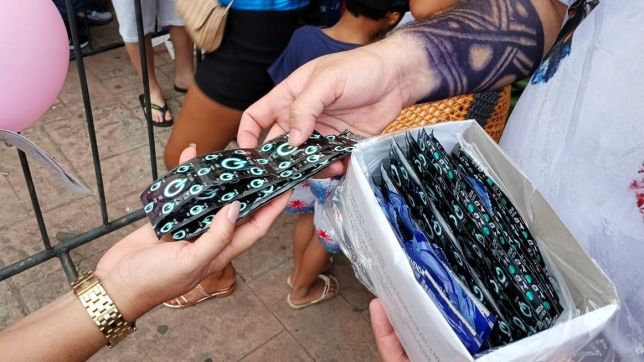 Durante a programação são distribuídos preservativos e material informativo sobre o tema