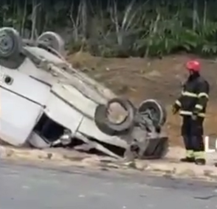 Na tarde desta segunda-feira, 17, um carro modelo Fiat Fiorino capotou na altura do quilômetro 62 da rodovia AM 010, que liga Manaus aos municípios de Rio Preto da Eva e Itacoatiara.