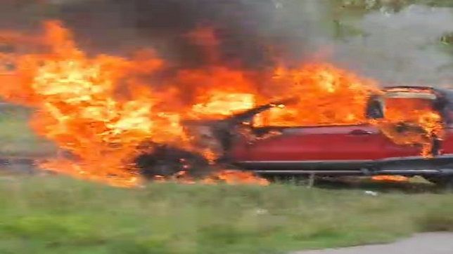 Um carro modelo Fiat Strada Adventure, de cor vermelha, placa NOT 3152, pegou fogo no final da tarde deste domingo, 15, quando trafegava pela rodovia BR-174, no sentido Manaus/Presidente Figueiredo.