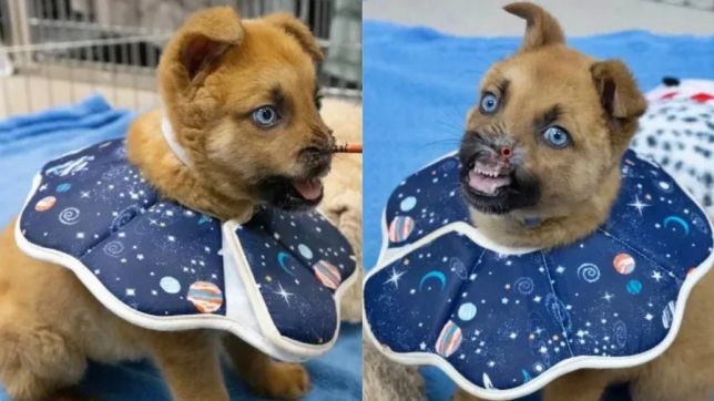 O cão foi resgatado com ferimentos graves, incluindo a perda do nariz