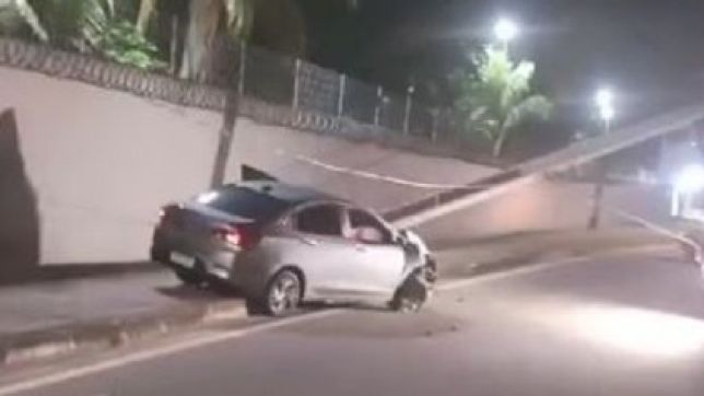 Um carro, cujo modelo e placa ainda não foram divulgados, trafegava em alta velocidade quando atingiu um poste da rede de energia elétrica, na Avenida das Torres, Zona Norte de Manaus.