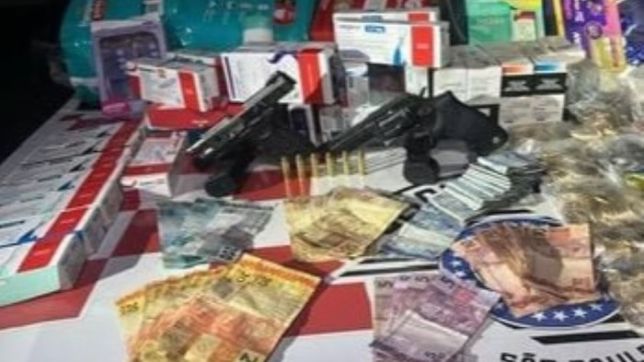 Os policiais militares foram acionados após o roubo a duas farmácias da região. Dois suspeitos foram presos dentro de uma terceira drogaria, onde estavam prestes a praticar um novo roubo. Eles foram presos em flagrante. Com a dupla foram apreendidas duas armas de fogo.