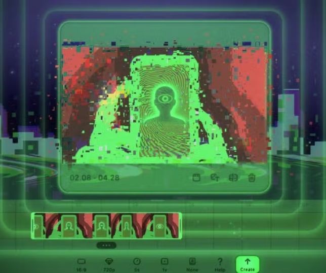 Depois que o usuário se registra, o aplicativo se parece bastante com plataformas de vídeos curtos, como o TikTok e o Reels do Instagram. É possível criar um vídeo digitando um prompt, como “uma luta entre Biggie e Tupac no estilo do anime Demon Slayer.”