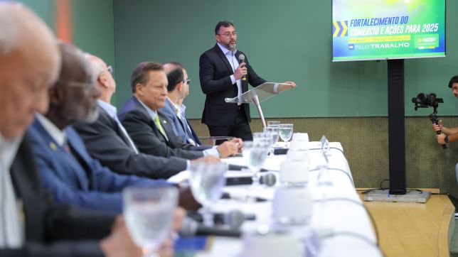 Durante reunião com representantes do comércio, nesta segunda-feira (16/06), o governador Wilson Lima apresentou uma série de medidas do Governo do Amazonas voltadas para o fortalecimento do setor comercial, com destaque para o enfrentamento dos impactos da estiagem e o estímulo à economia local, por meio da antecipação do pagamento da primeira parcela do 13º salário dos servidores estaduais.