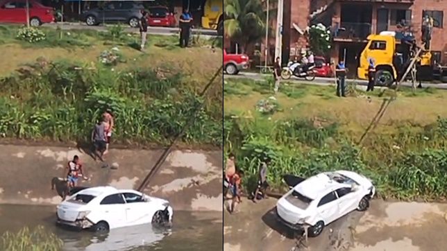 o carro foi removido do Igarapé do 40 na manhã desta segunda-feira com utilização de um guincho