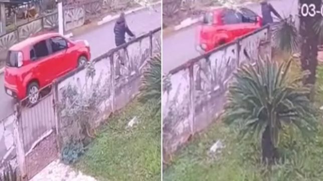 Uma mulher foi atropelada e prensada contra um muro em Três Barras, no Planalto Norte catarinense, na manhã desta quinta-feira (7). A ação foi flagrada por câmeras de segurança de um imóvel.
