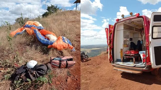 O caso aconteceu por volta das 13h40 no Morro do Macaco, zona rural da cidade. Conforme os bombeiros, o parapente caiu após apresentar falhas.