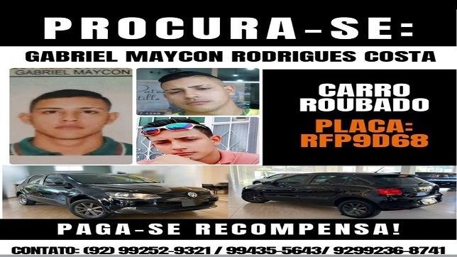 O dono da locadora de veículos, que prefere não se identificar, está oferecendo inclusive uma recompensa para quem der informação que ajude a recuperar o Gol alugado e que não foi devolvido por Gabriel Maycon Rodrigues Costa.