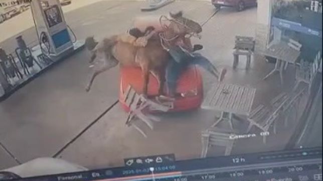 Um homem entra no espaço do posto conduzindo um veículo VW/Gol e atropela a vítima, que estava ao lado de um cavalo. Em seguida, agressor e vítima entram em luta corporal, momento no qual o motorista do automóvel desfere os golpes de facão.