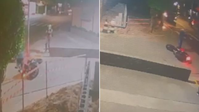 Imagens de câmeras de segurança registraram o momento da ação. O policial, que estava de moto, para em frente a um prédio e é surpreendido por quatro criminosos em duas motocicletas.