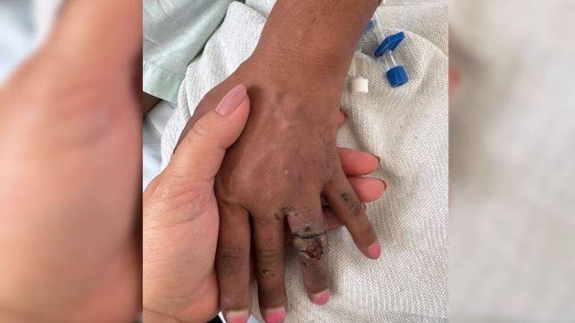 Imagens mostram que a vítima teve os dedos dilacerados e apresenta marcas de cordas nas pernas, além de diversos hematomas espalhados pelo corpo.