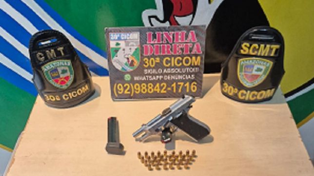 Um homem identificado como “Erick” foi preso em flagrante, com uma pistola PT HC Plus Inox calibre 380 depois de participar do assassinato do usuário de drogas conhecido como “Bi”.