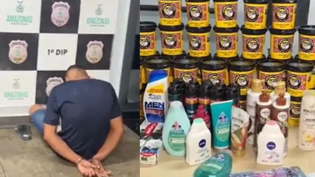 Na tarde de sábado (26), policiais militares prenderam Jhonathan Silva do Carmo por tentar furtar manteigas Cabeça de Touro e outros produtos, no bairro Raiz, na Zona Sul de Manaus.