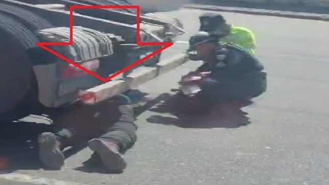 Mulher cai com motocicleta e escapa de ser esmagada por carreta na Zona Leste de Manaus. VEJA VÍDEO