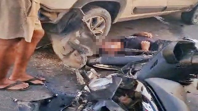 A motocicleta teria sido atingida primeiramente por um carro que estava em alta velocidade e fez o motociclista perder o controle da direção do veículo.