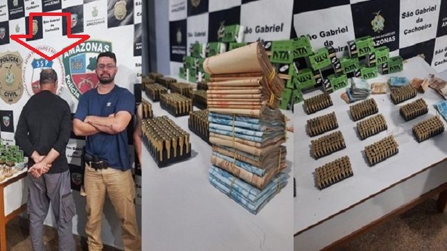 Policiais civis das Delegacias Especializada (DEP) e Interativa de Polícia (DIP) de São Gabriel da Cachoeira, distante 852 quilômetros de Manaus, realizaram uma ação policial que resultou na prisão de Risomar Reinaldo Nogueira da Silva, de 61 anos, e na apreensão de mais de 800 munições de calibre 38 e R$ 23 mil em espécie, no bairro Areal.