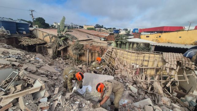 O Corpo de Bombeiros foi acionado e realizou buscas nos escombros. Uma vítima foi encontrada soterrada e teve o óbito confirmado ainda no local por equipes do Serviço de Atendimento Móvel de Urgência.