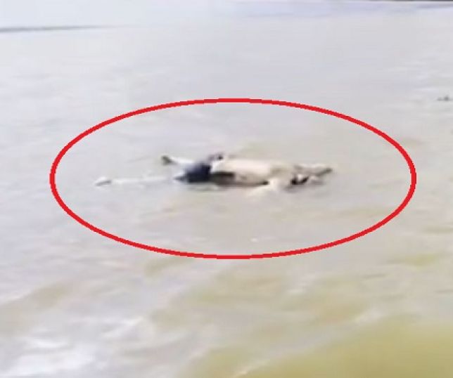 Morador da comunidade viu o corpo no rio, fez a fotografia e enviou para o Corpo de Bombeiros Militar na tarde deste domingo