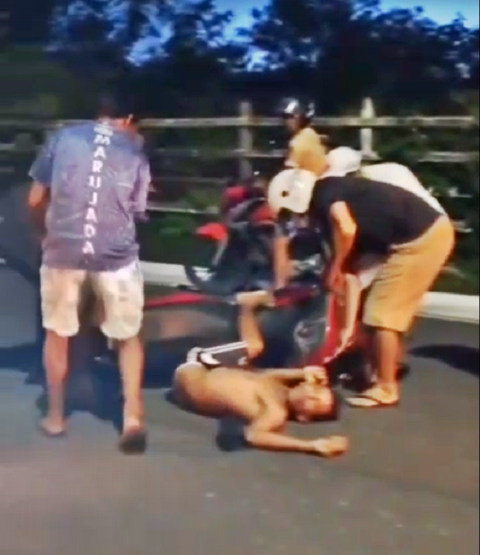 Vários populares iniciaram o socorro ao jovem e à sua acompanhante que estava na garupa da motocicleta e foi quem mais se feriu.