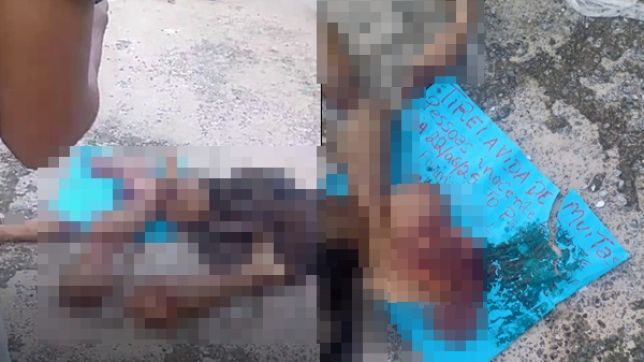 Em um dos bilhetes, deixado ao lado da cabeça da vítima, estava escrito: “Tirei a vida de muitas pessoas inocentes. Hoje, dia 22/6/2025, estou pagando da pior forma possível.”
