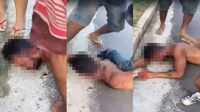 O homem foi arrastado para o meio da rua e agredido com muita violência pelos moradores enfurecidos