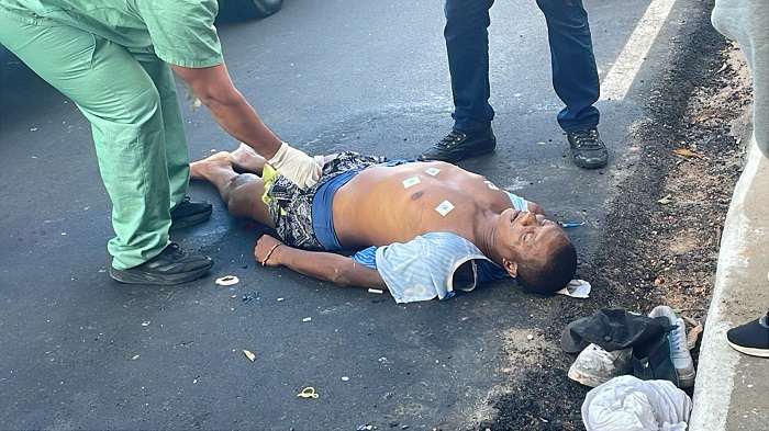 Ele foi atingido violentamente pela dirigida por um homem que também ficou bastante ferido no acidente e foi levado para uma unidade hospitalar, após a chegada de uma equipe do Serviço de Atendimento Móvel de Urgência.