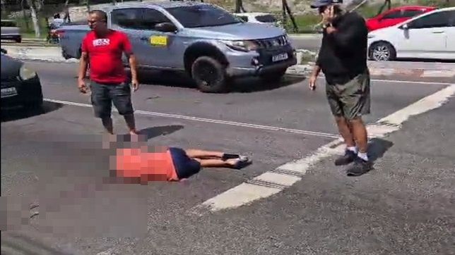 Um vídeo divulgado por uma das pessoas que testemunhou o acidente, mostra o pedestre caído na pista, perdendo sangue pelos ferimentos na cabeça.