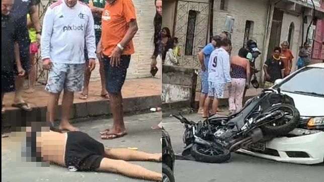 Uma violenta colisão entre motocicleta e carro Honda Civic, ocorreu na manhã desta terça-feira, 30, em uma rua através do shopping, no bairro de São José Operário, Zona Leste de Manaus.