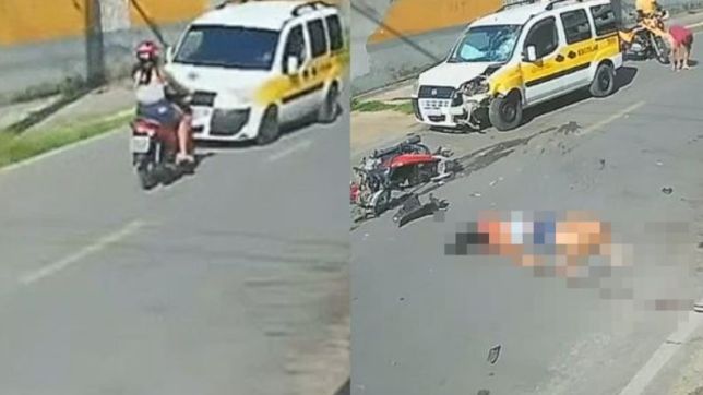 As imagens mostram o impacto violento ocorrido por volta das 15h34, quando a moto colidiu frontalmente com o veículo conduzido por Ziltamar de Araújo Góes Júnior, de 38 anos.