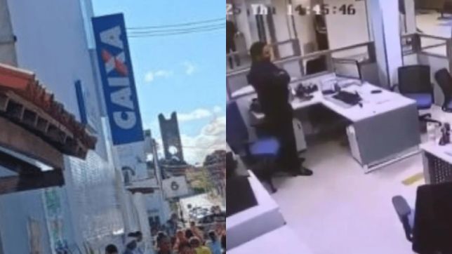 A gravação de uma das câmeras de segurança da Caixa Econômica Federal, em Dias D’Ávila, mostra a confusão que terminou com a morte de um cliente.