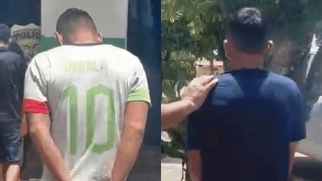 Os irmãos criminsos chegando algemados à Delegacia