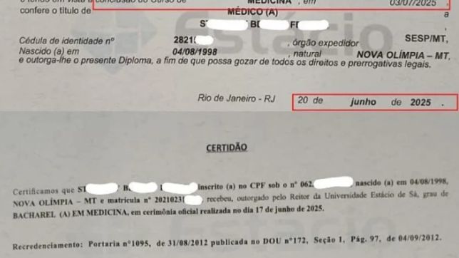 Durante a análise, os funcionários identificaram que os nomes das irmãs não constavam na ata de colação de grau da faculdade informada e que os diplomas apresentavam sinais claros de falsificação.