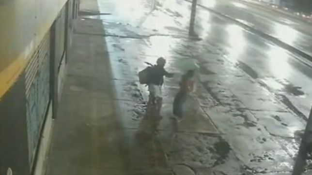 Imagens de uma câmera de segurança mostram o suspeito abordando a vítima em uma calçada. O homem sai da moto, para na frente da mulher e dá um soco nela, que cai o chão. Posteriormente, ele foge do local. A jovem pediu ajuda em uma oficina da região.