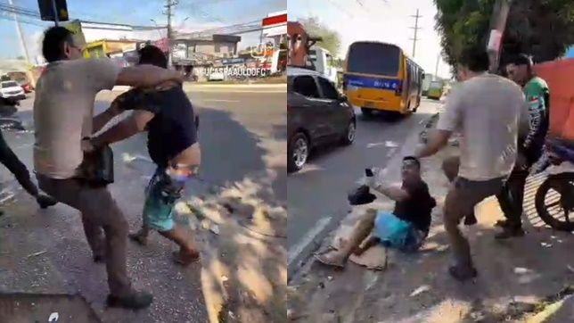 Se estivessem com armas de fogo, os criminosos poderiam disparar tiros, no entanto, ele escapou de ter seus bens roubados e os assaltantes foram embora do local, como mostram as imagens.