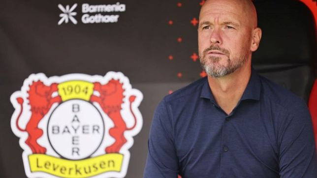 Ten Hag comandou o Bayer Leverkusen em apenas três partidas oficias e saiu com uma vitória, um empate e uma derrota