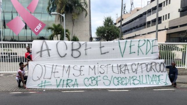 Flamenguistas protestam contra o Palmeiras: 'CBF é verde'