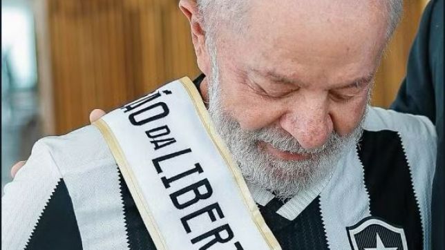 Torcedor do Corinthians, o presidente Lula (PT) posou, neste sábado, com uma camisa do Botafogo e a faixa de campeão da Libertadores, enviadas pelo clube alvinegro. Nas redes sociais, o presidente postou uma foto agradecendo pelo presente e afirmou que "não tem como não ficar feliz vendo o Botafogo brilhar".