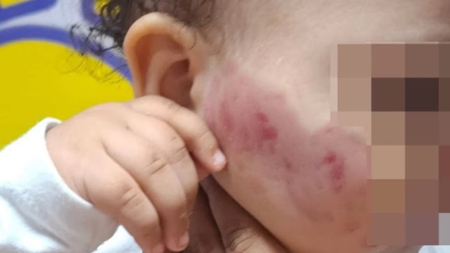Ela disse que estava no trabalho quando, por volta das 15h30, recebeu uma ligação da creche, dizendo que a bebê havia sido atacada por um colega com uma mordida em cada bochecha.