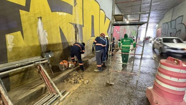 Iniciada na segunda-feira (20), a intervenção técnica utiliza polímero de vedação para reforçar a estrutura e assegurar o escoamento das águas pluviais.