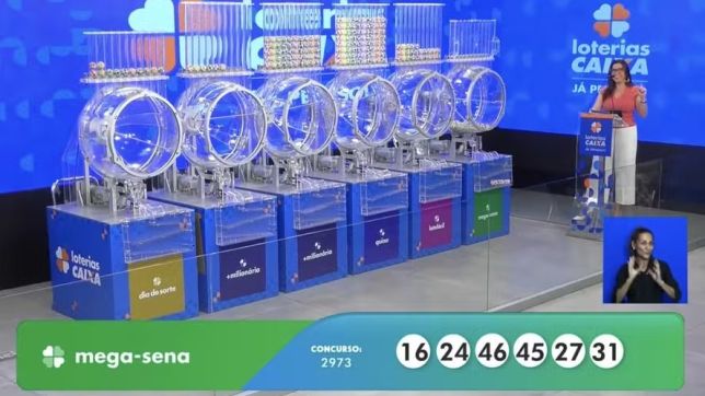 A Caixa Econômica Federal realizou neste sábado o sorteio do concurso 2.973 da Mega-Sena, com prêmio estimado em R$ 62.201.742,02.