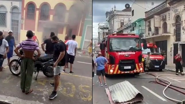 Um prédio de três andares, ocupado por duas famílias formadas por adultos e crianças, foi atingido por um incêndio na Rua Joaquim Nabuco, área central de Manaus, Zona Sul.