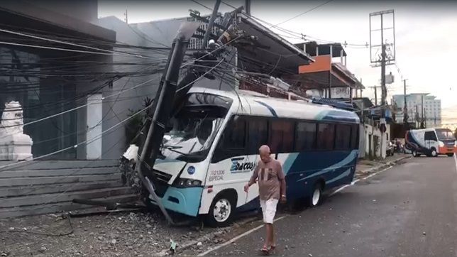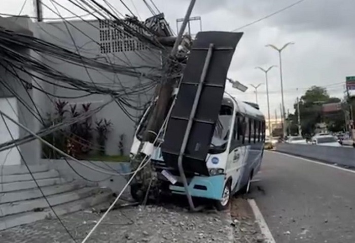 Um poste da rede de energia elétrica foi atingido por um micro-ônibus da Empresa Edacos e provocou apagão em um extenso trecho da Avenida Darcy Vargas, bairro da Chapada, Zona Centro-sul de Manaus.