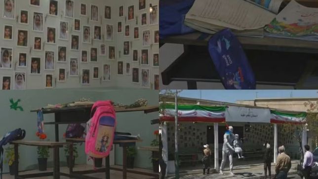 Objetos pessoais de crianças que morreram em um ataque a uma escola no Irã foram reunidos e transformados em um memorial improvisado em homenagem às vítimas.